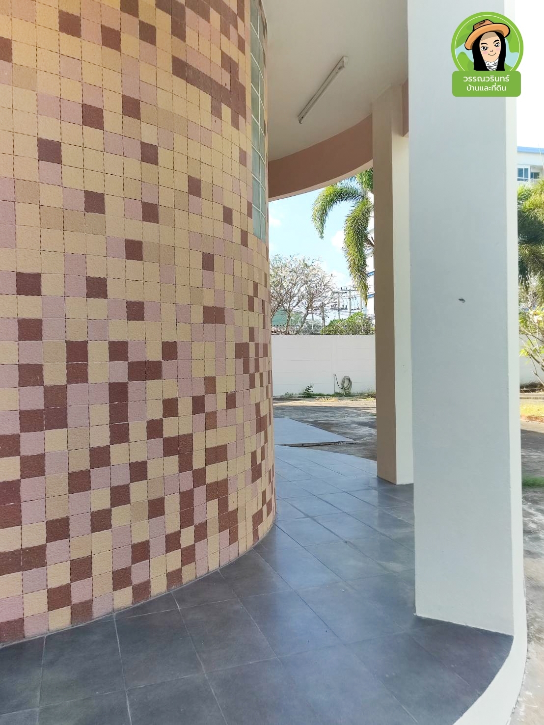 – ถนนในพื้นที่ดินจากรั้วหน้า เข้าสู่ตัวบ้าน มีต้นปาล์มหางกระรอกขนาดใหญ่เรียงรายตลอดทาง ให้ความร่มรื่น สวยงาม